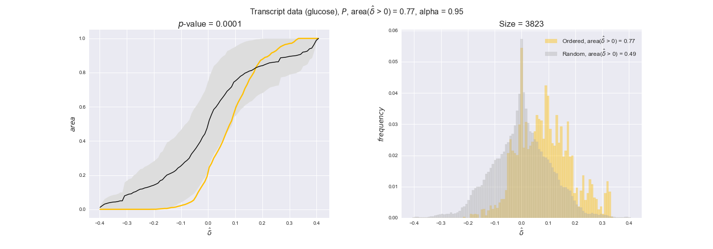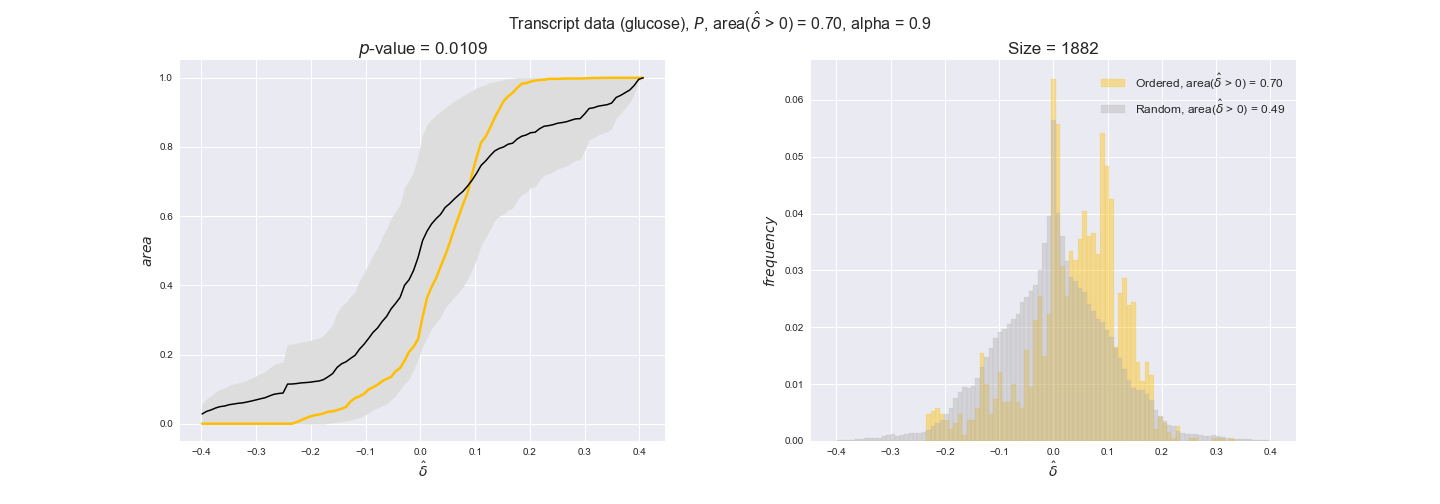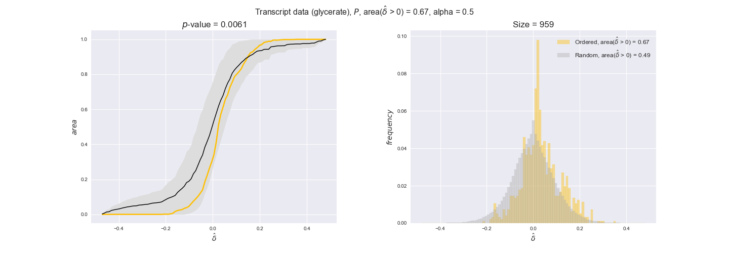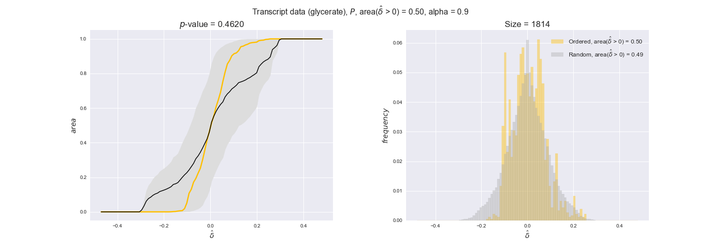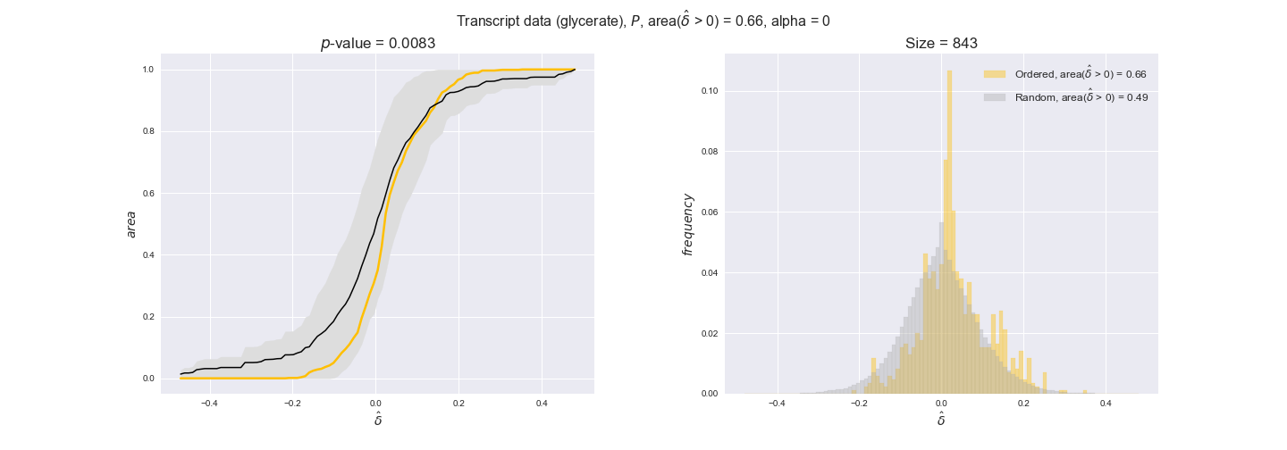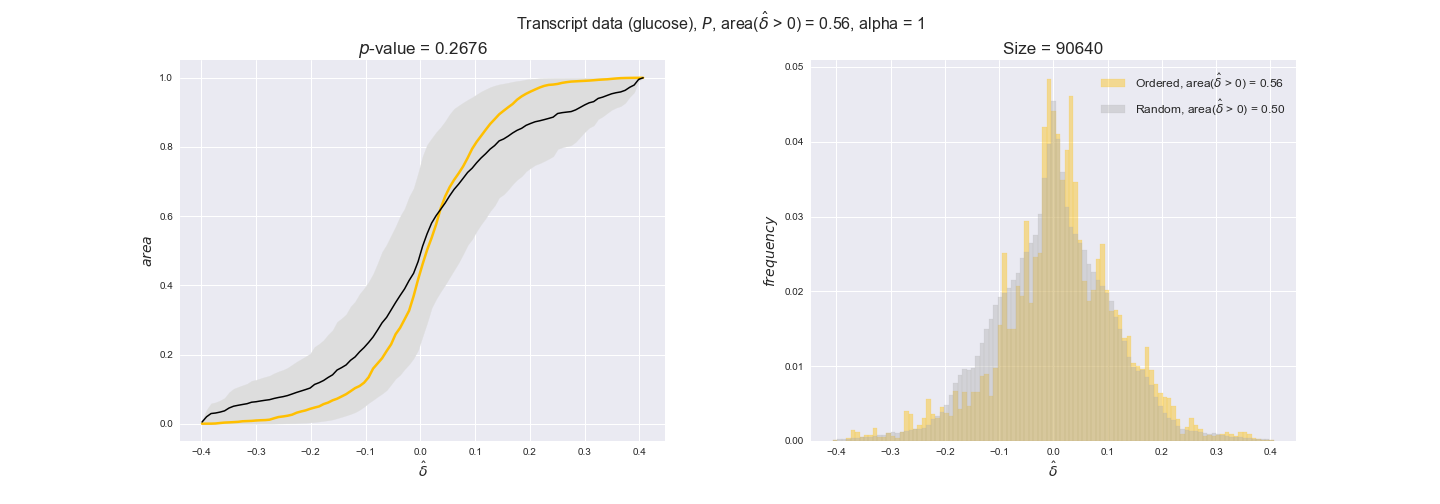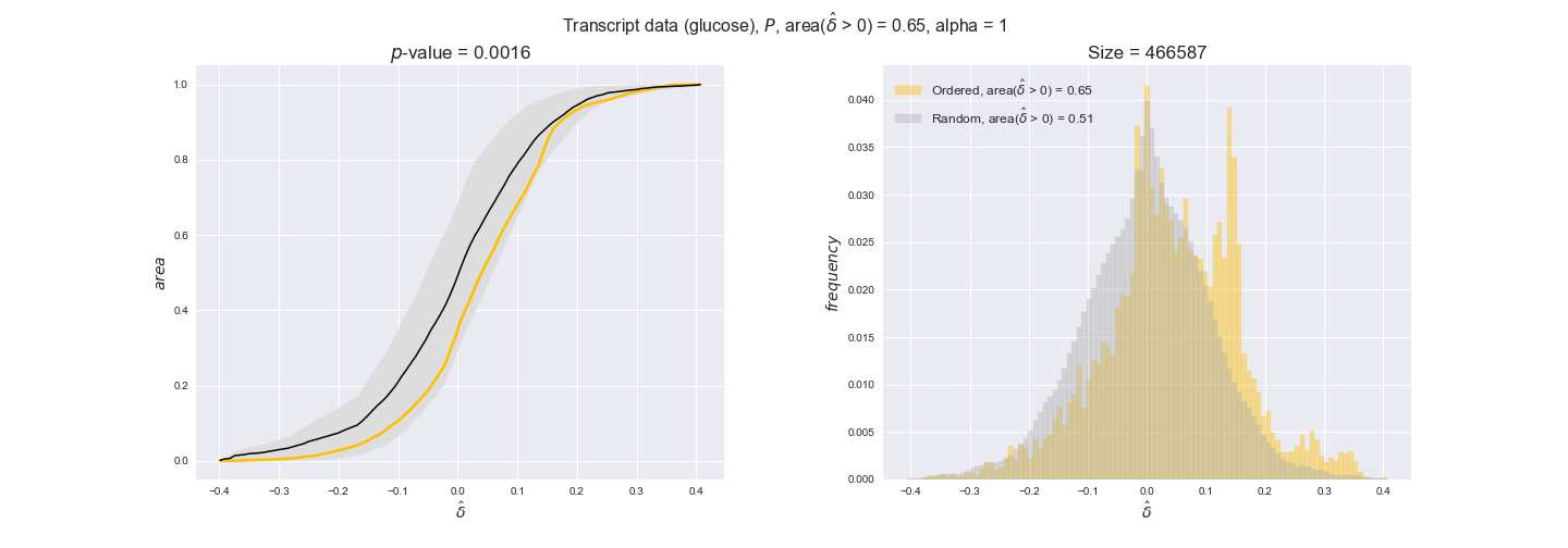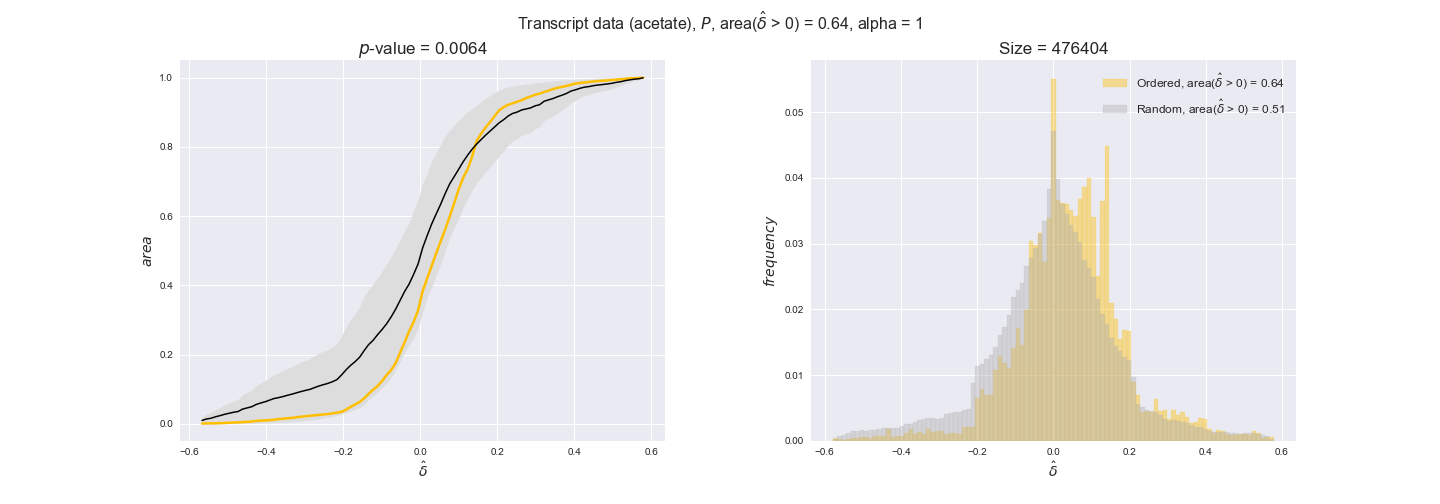 We see that $k_{cat}$ values produce positive differences in approximately 80% of the cases when we use models across carbon sources, thus suggesting that enzymes have optimized this property during evolution to match the flux order relation. Additionally, the $p$-value = $10^{-4}$ is the smallest possible, i.e. none of the samples in the permutation analysis produced an equal or more extreme observation, thus results are solid. There are two observations here. On the one hand, optimizing $k_{cat}$ values would further minimize metabolic costs since increasing reaction rate to match the order relation would be done by modifying the catalytic rate instead of the number of enzyme copies. On the other hand, there is experimental evidence indicating that many enzymes, particularly in central metabolism, operate under substrate saturation — in conditions in which reaction rate is independent of substrate concentrations. In this latter case, $k_{cat}$ values correlate even better with reaction fluxes since reaction fluxes no longer depend on metabolite concentrations.