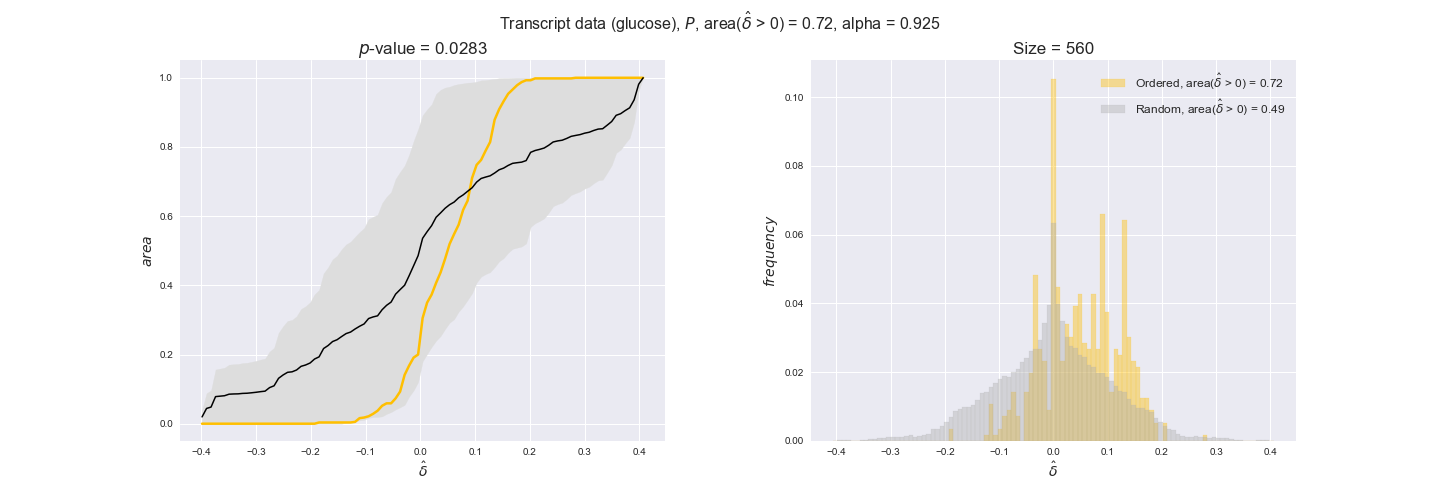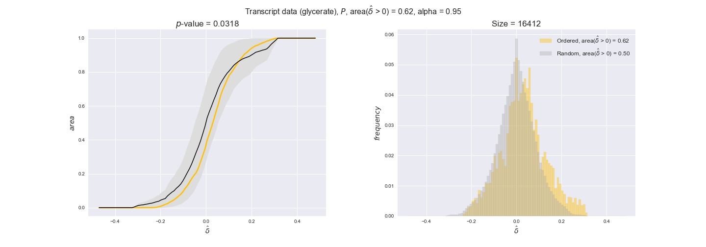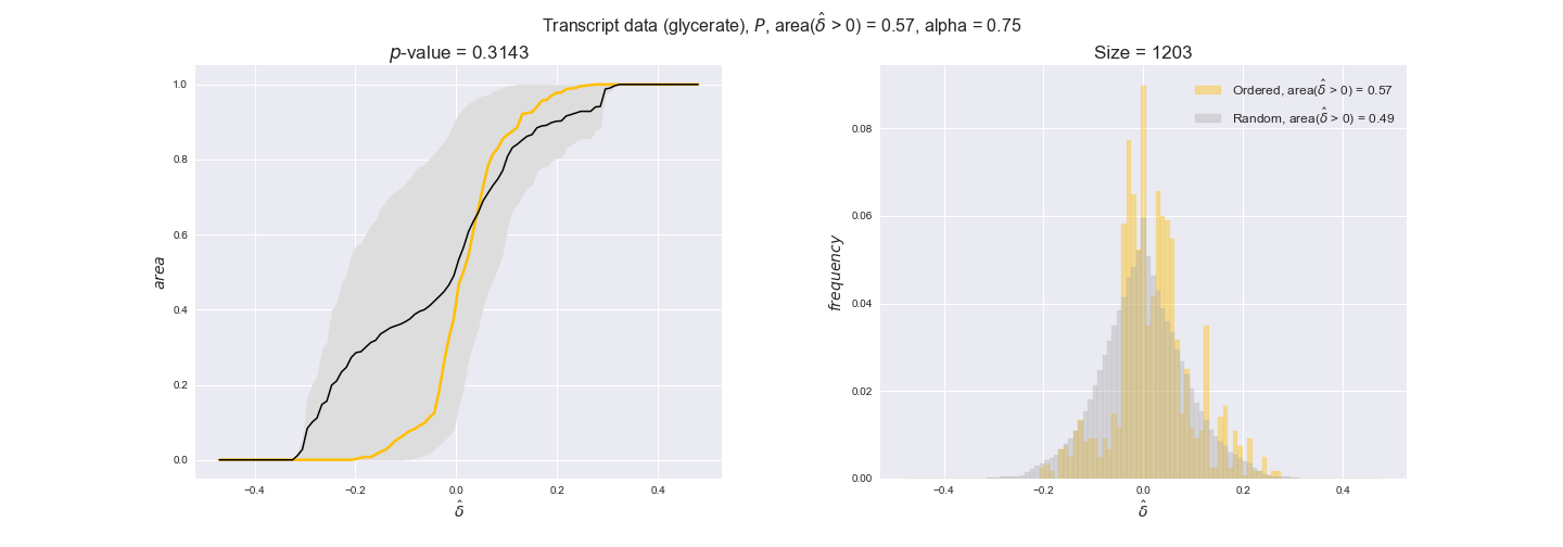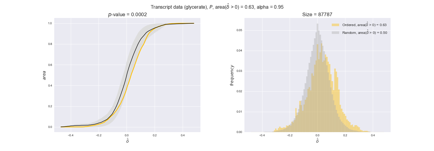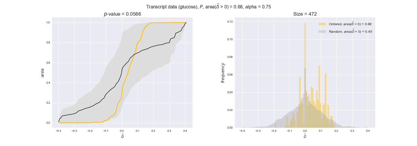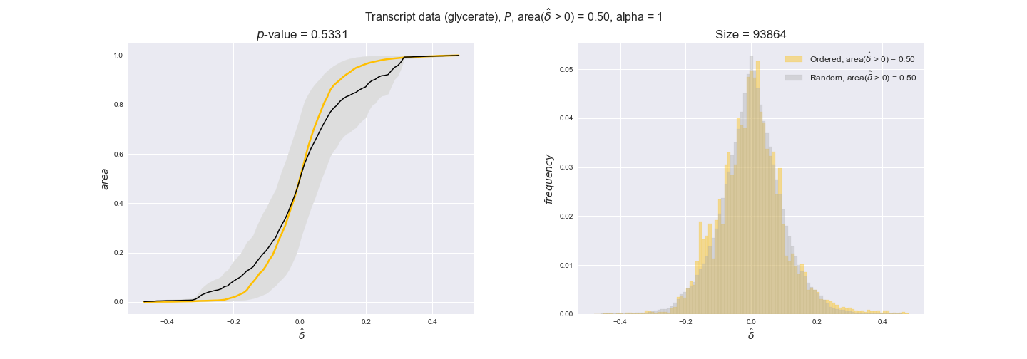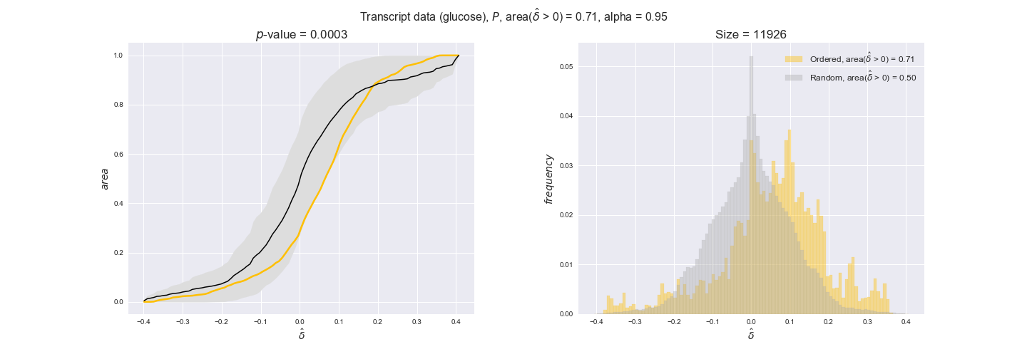 We see that $k_{cat}$ values produce positive differences in approximately 80% of the cases when we use models across carbon sources, thus suggesting that enzymes have optimized this property during evolution to match the flux order relation. Additionally, the $p$-value = $10^{-4}$ is the smallest possible, i.e. none of the samples in the permutation analysis produced an equal or more extreme observation, thus results are solid. There are two observations here. On the one hand, optimizing $k_{cat}$ values would further minimize metabolic costs since increasing reaction rate to match the order relation would be done by modifying the catalytic rate instead of the number of enzyme copies. On the other hand, there is experimental evidence indicating that many enzymes, particularly in central metabolism, operate under substrate saturation — in conditions in which reaction rate is independent of substrate concentrations. In this latter case, $k_{cat}$ values correlate even better with reaction fluxes since reaction fluxes no longer depend on metabolite concentrations.
